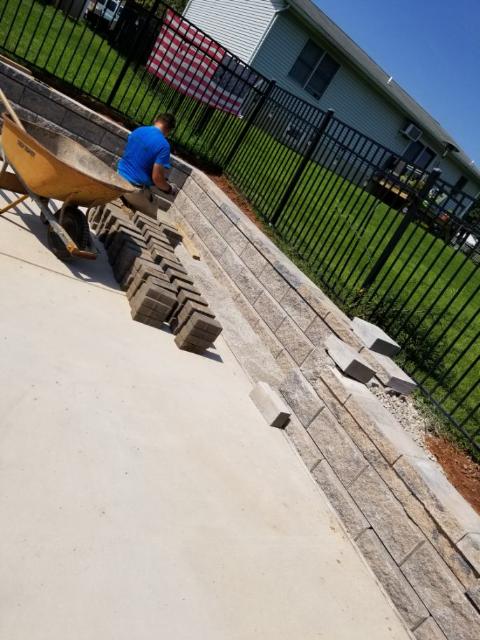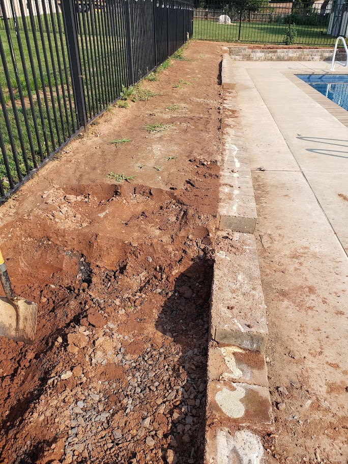 It was a short retaining wall averaging between 2 to 2 1/2 feet tall around a pool area. The wall was leaning toward the pool and continuing to lean farther every year. The customer wanted a new wall installed that wouldn’t have the same issues also adding to the look and function of the pool area.